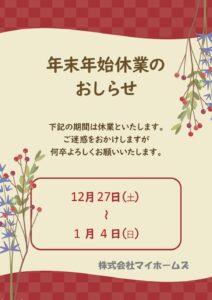 2026年もマイホームズをよろしくお願いいたします。例年と同じように本年もコツコツと不動産に関わるお悩みを解決して参ります。遠慮なくお声がけください。 まずは、みなさまがこの1年を健康で何事も「ウマ」く過ごせるように祈っ […]
